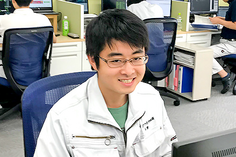 入社後は設計部員として、ごみ処理場や工場などから排出されるガスの処理装置を設計しています。日々、ものづくりの大変さ、難しさ、そしてもちろん楽しさに浸っています。