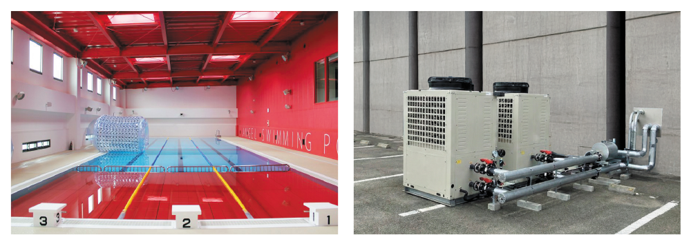 直接加熱方式を採用した最新のプール専用ヒートポンプです。ろ過装置と連動し、効率的にプールの加温・冷却を行います。