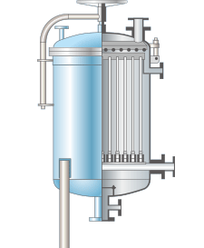タテ型のタンク内に、角形リーフ/星形エレメントをセットしたろ過装置です。 排水処理、化学、食品向けに適しています。
